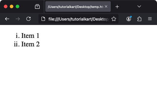 list-style-type: lower-roman; /* Options: decimal, lower-alpha, upper-alpha, etc. */