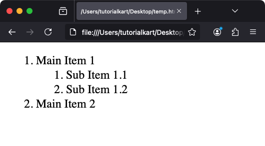 Упорядоченные списки могут быть вложенными друг в друга для создания иерархических структур. Каждый вложенный список помещается внутрь элемента