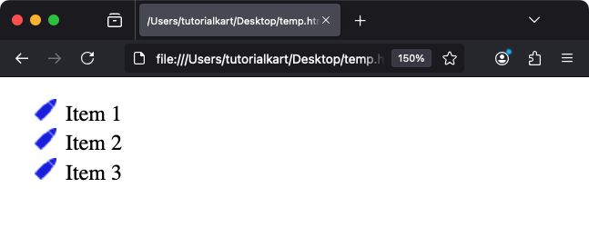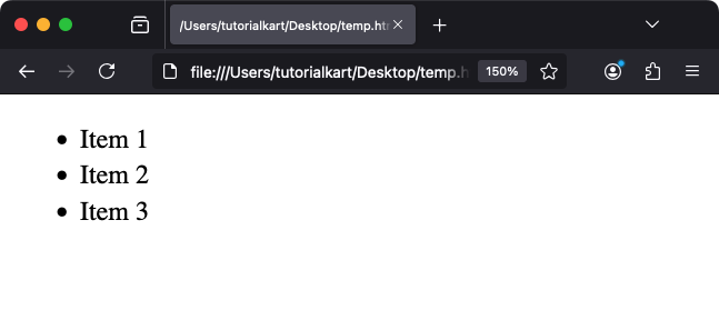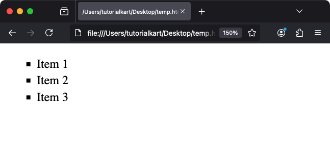 По умолчанию браузеры отображают каждый элемент списка с маркером, как показано на следующем снимке экрана.